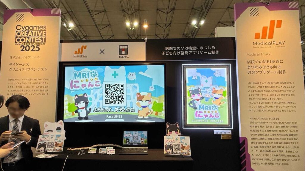 完成した作品は、幕張メッセにて開催された「若きクリエーター展」において発表され、多くの来場者の皆様に体験いただきました。国内外からの来場者に広くプレイいただき、医療に対する理解促進と不安軽減に寄与する取り組みとして、大きな反響を得ることができました。